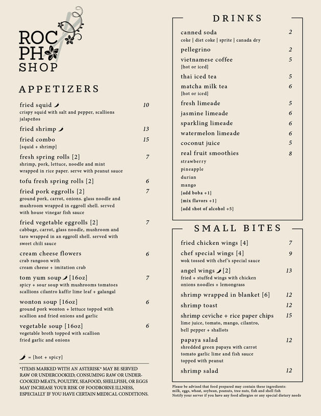 Roc Pho Shop Menu